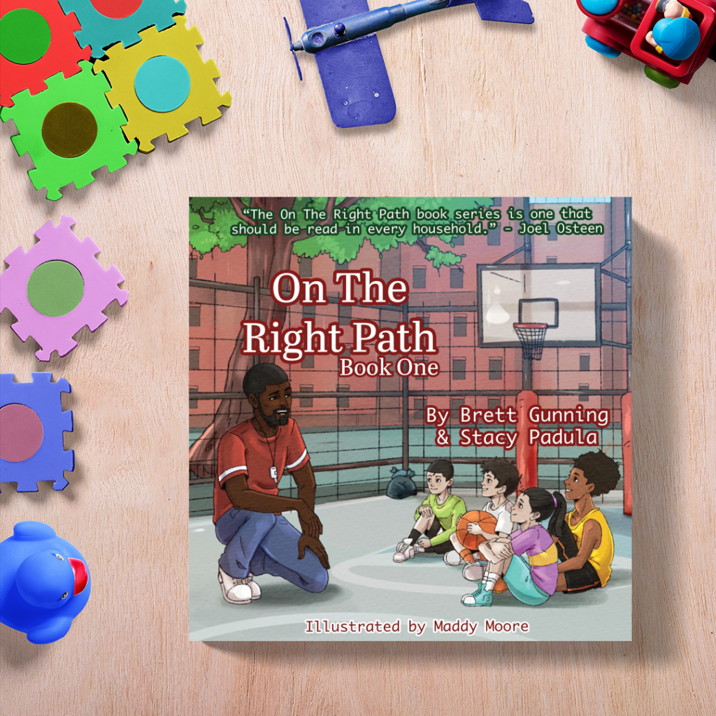 NBA Coach Brett Gunning and award-winning author Stacy Padula have teamed up to create the On The Right Path (OTRP) book series. OTRP is also a non-profit organization created by Brett Gunning to guide youth basketball players on the right path to achieving their maximum potential through education, mentorship, and skill development. The core principles of OTRP are guidance, inspiration, and creativity. The book series focuses on six life-skill pillars: Loving Others, Being Unselfish, Staying Healthy & Strong, Showing Respect, Showing Forgiveness, and Having Fun.