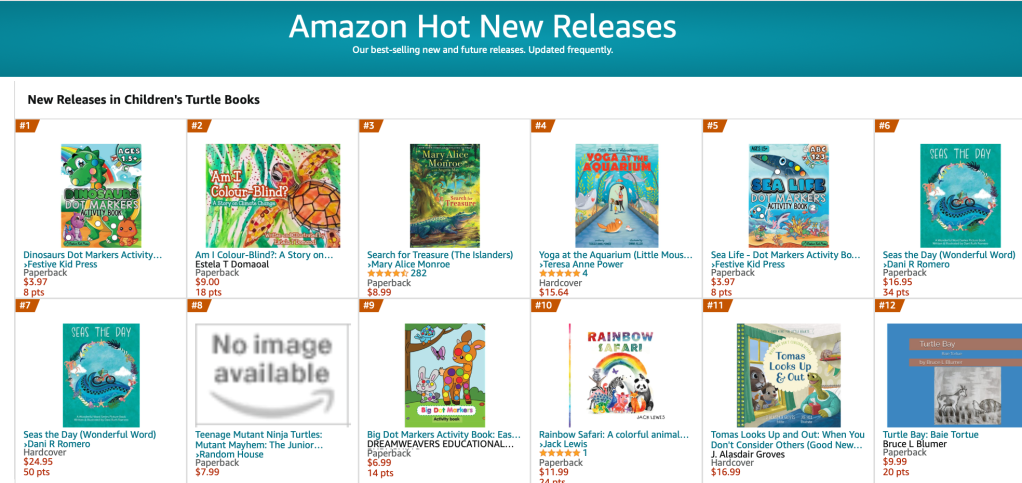 Seas the Day (hardcover & paperback) debuted on two of Amazon’s Hot New Release lists: “Children’s Turtle Books” and “Children’s Christian Social Issues Fiction.”