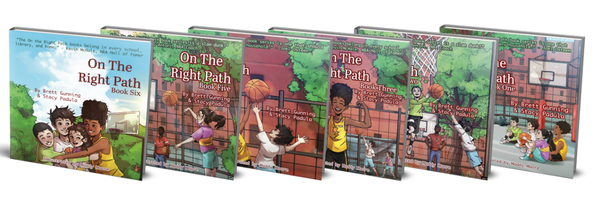NBA Coach Brett Gunning and award-winning author Stacy Padula have teamed up to create the On the Right Path (OTRP) book series. OTRP is also a non-profit organization created by Brett Gunning to guide youth basketball players on the right path to achieving their maximum potential through education, mentorship, and skill development. The core principles of OTRP are guidance, inspiration, and creativity. The book series focuses on six life-skill pillars: Loving Others, Being Unselfish, Staying Healthy & Strong, Showing Respect, Showing Forgiveness, and Having Fun.